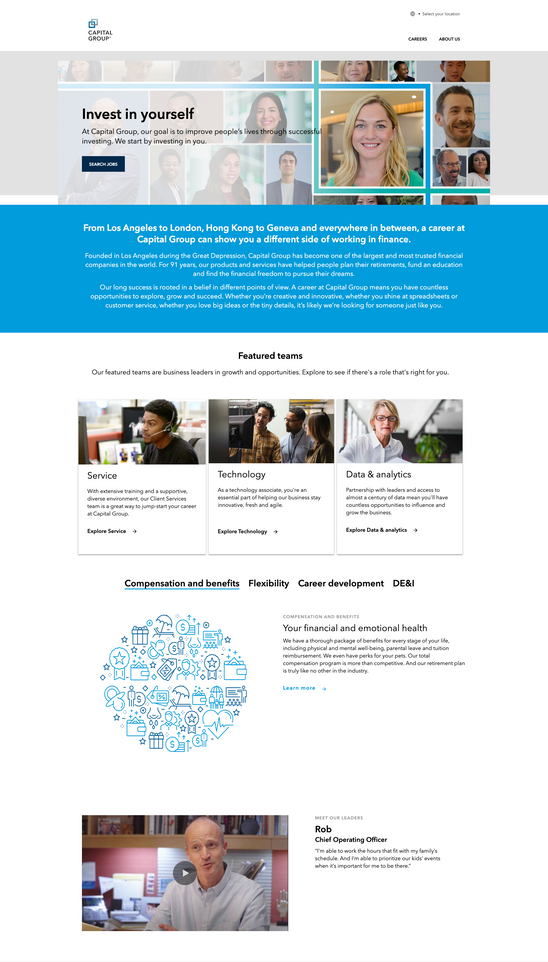 Career site redesign I helped optimize for menus, message flows and calls-to-action