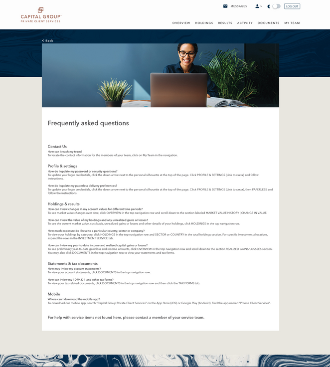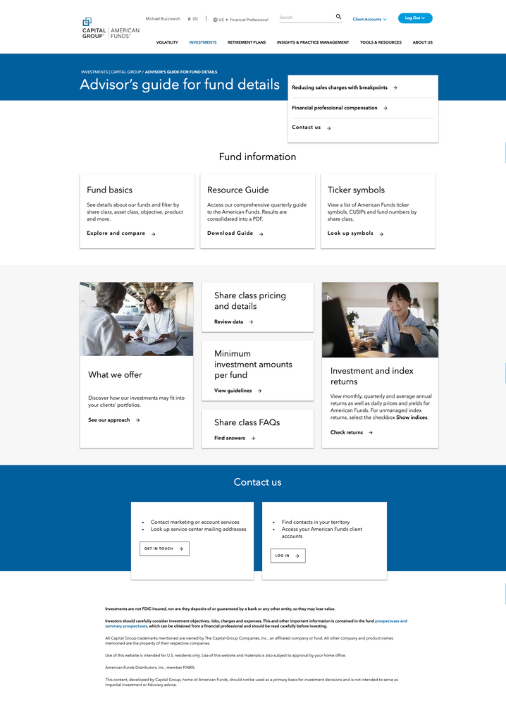 An investment resources page I prioritized for business goals and redesigned for usability